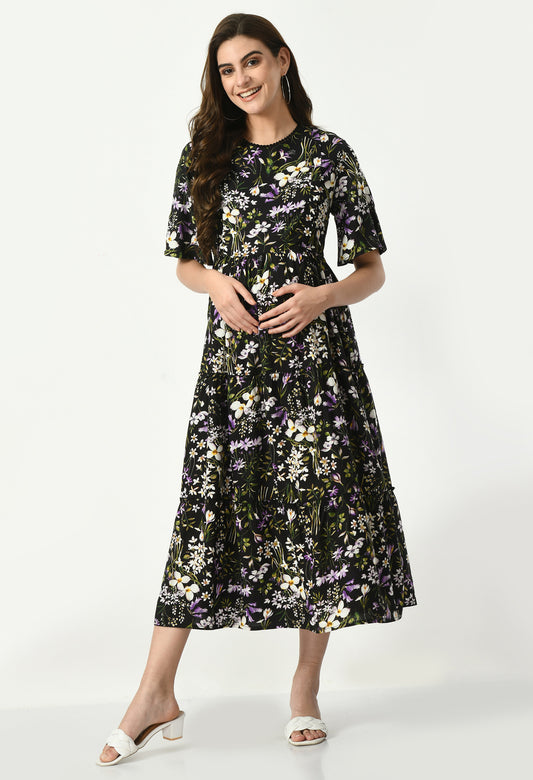 Sold outBlack Floral Maternity Midi Dress