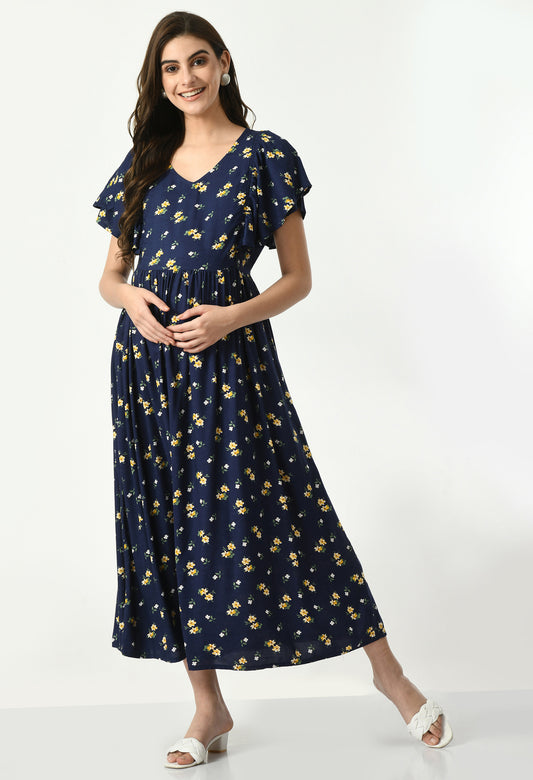 Blue Floral Maternity Midi Dress