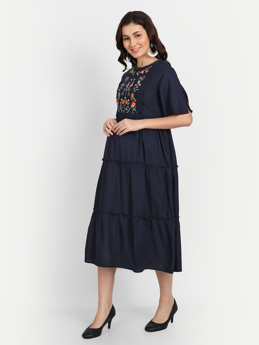 Blue Maternity Midi Dress
