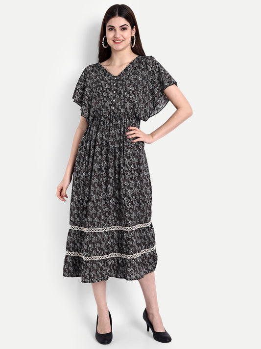 Black Ethnic Motifs Maternity Midi Dress
