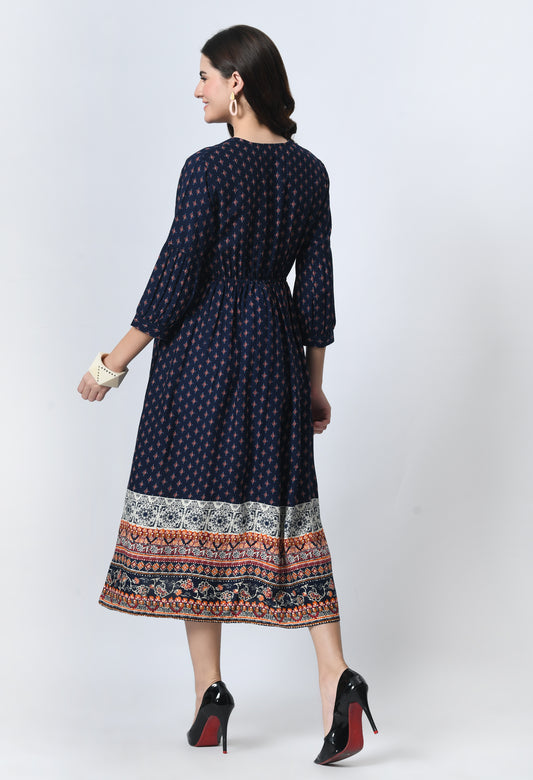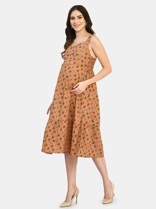 Ethnic Motifs Print Maternity Fit & Flare Midi Dress