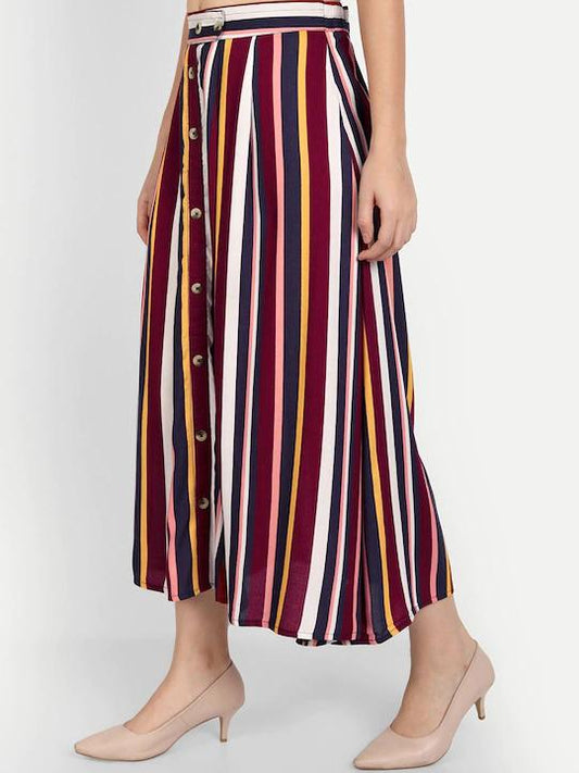 Striped Flared Sleeve Maternity Fit & Flare Midi Dress