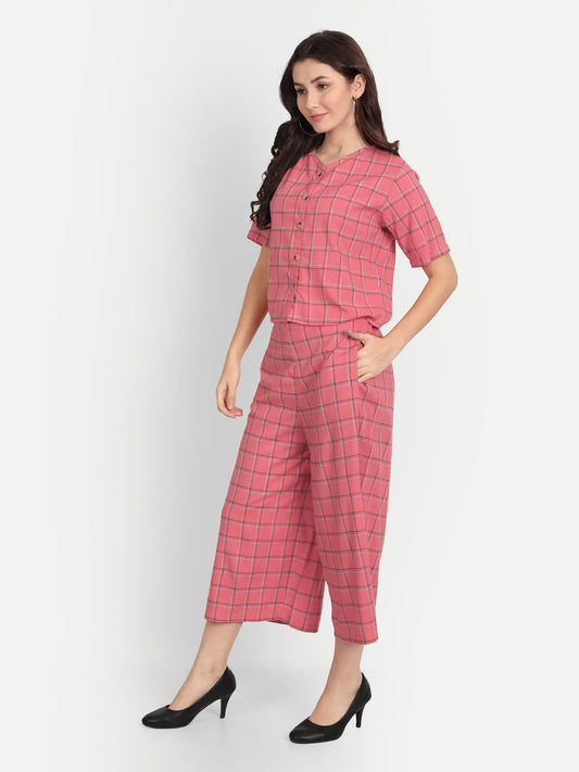 Women Pink Checked Co-Ords