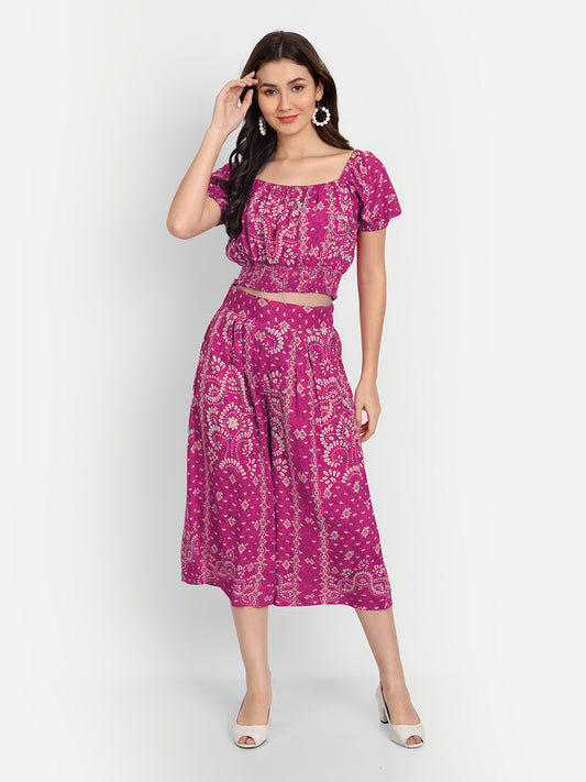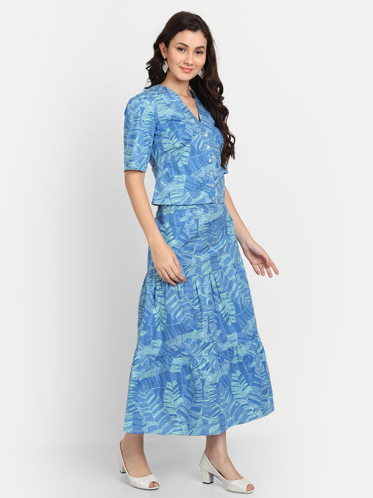 Women Printed Short Sleeves Top and Skirt Co-Ords