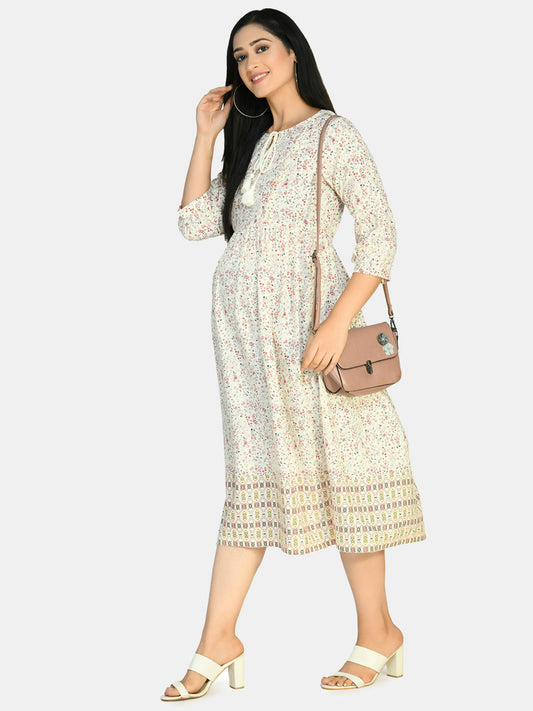 Women Beige & Yellow Floral Printed Maternity A-Line Dress