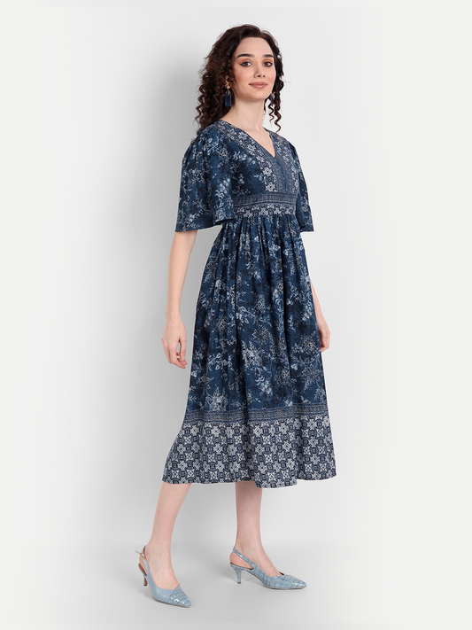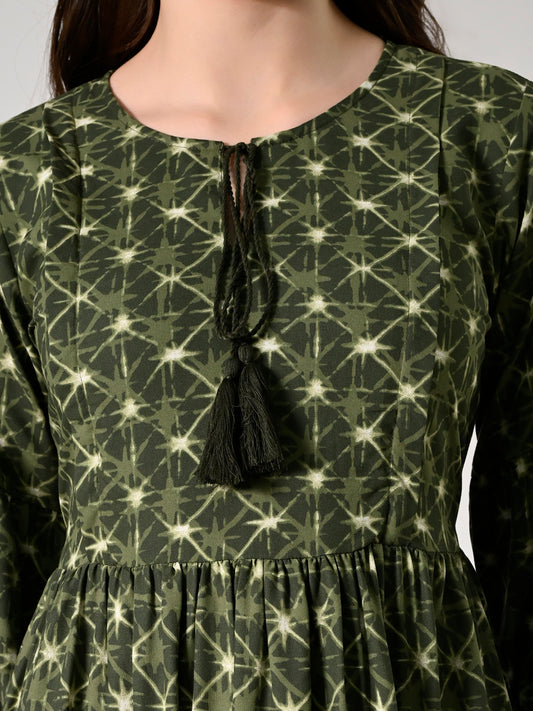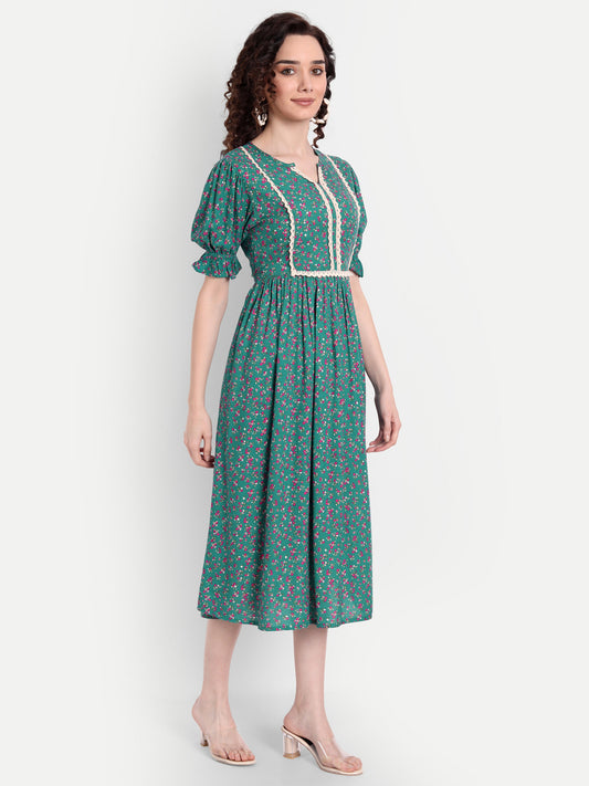 Ethnic Motifs Printed Green Maternity Fit and Flare Midi Dress