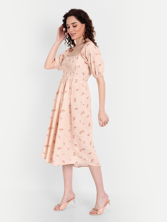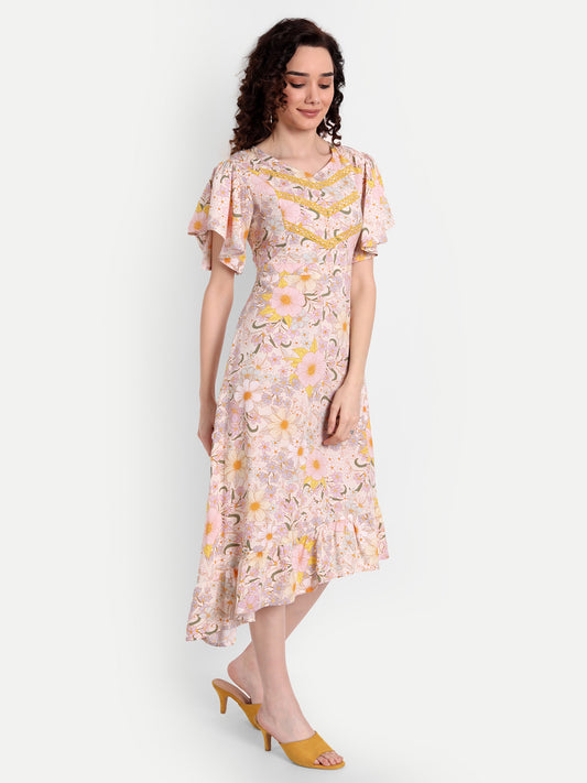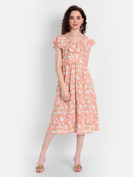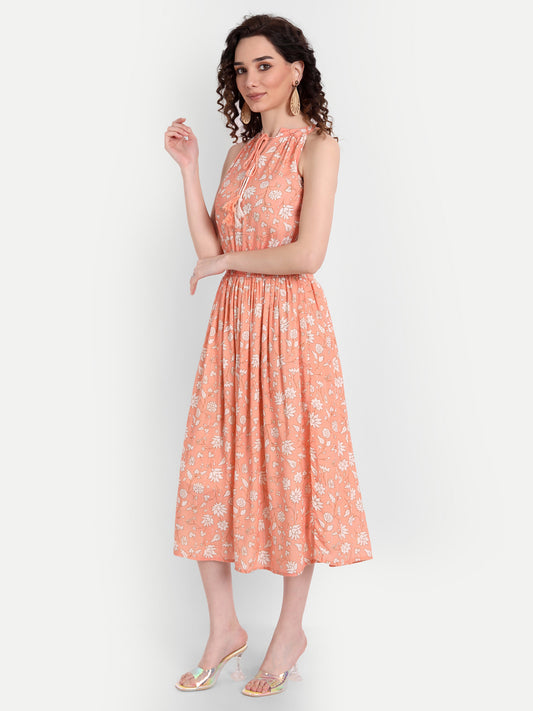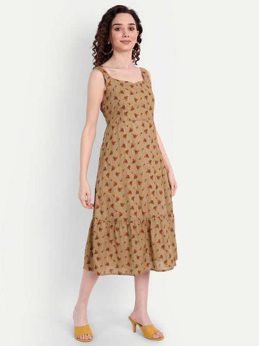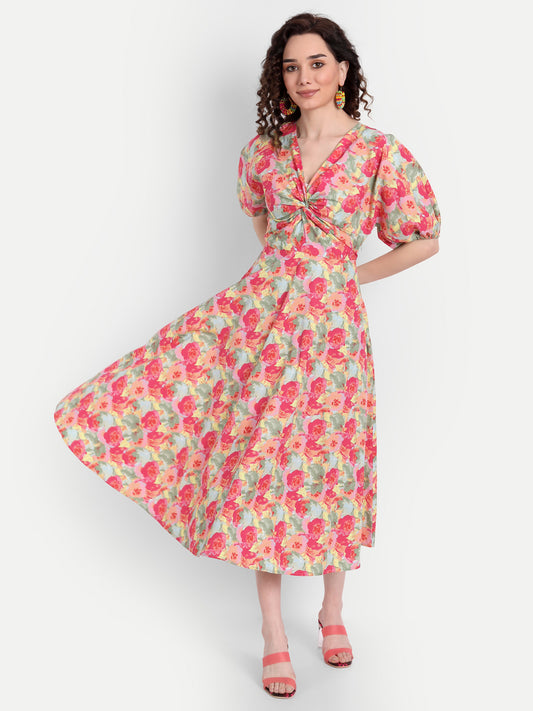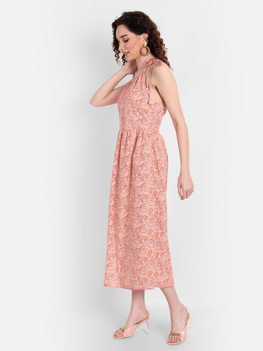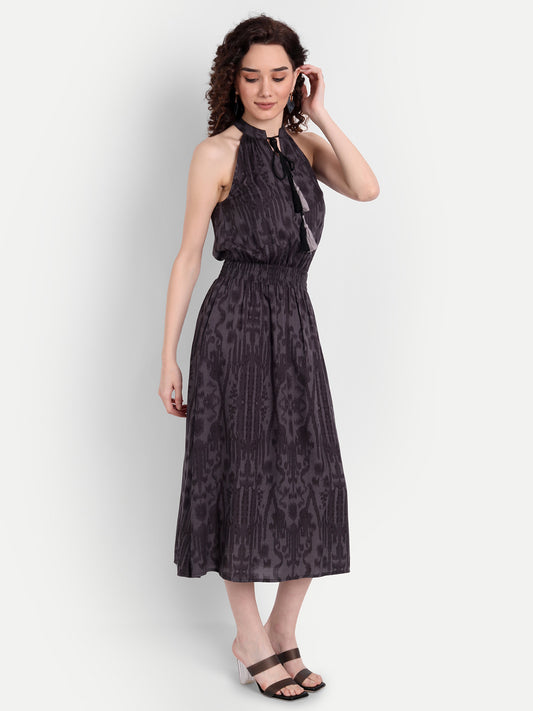 Sold outGrey Floral Tie-Up Neck Midi Dress