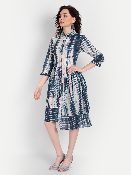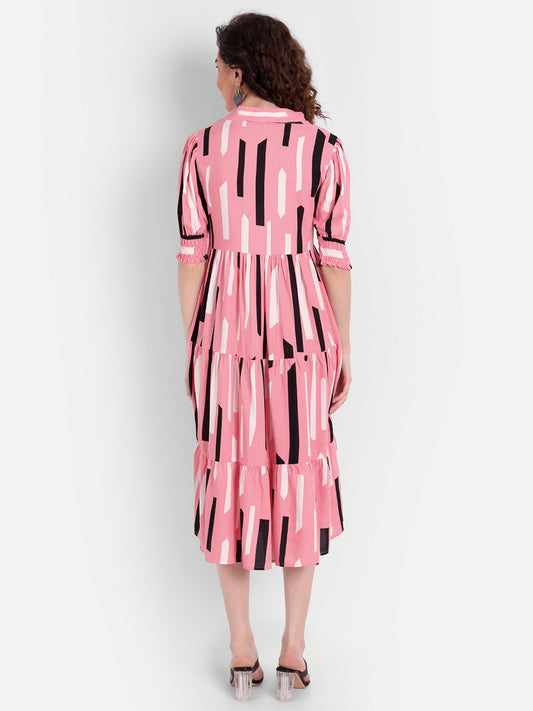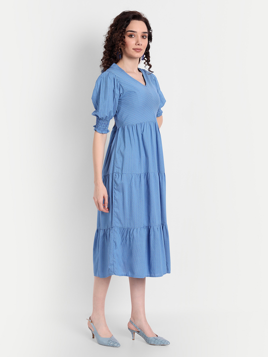 Women Maternity Tiered Flared Sleeves Fit and Flare Dress