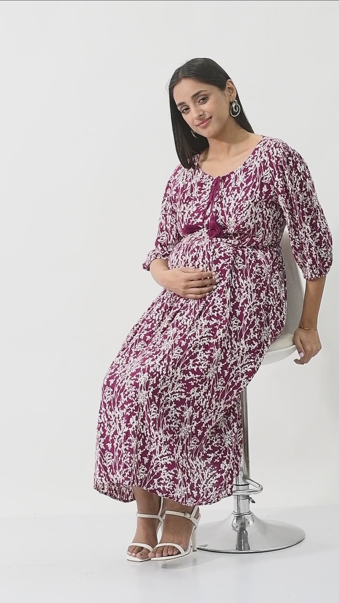 Burgundy Floral Maternity Midi Dress