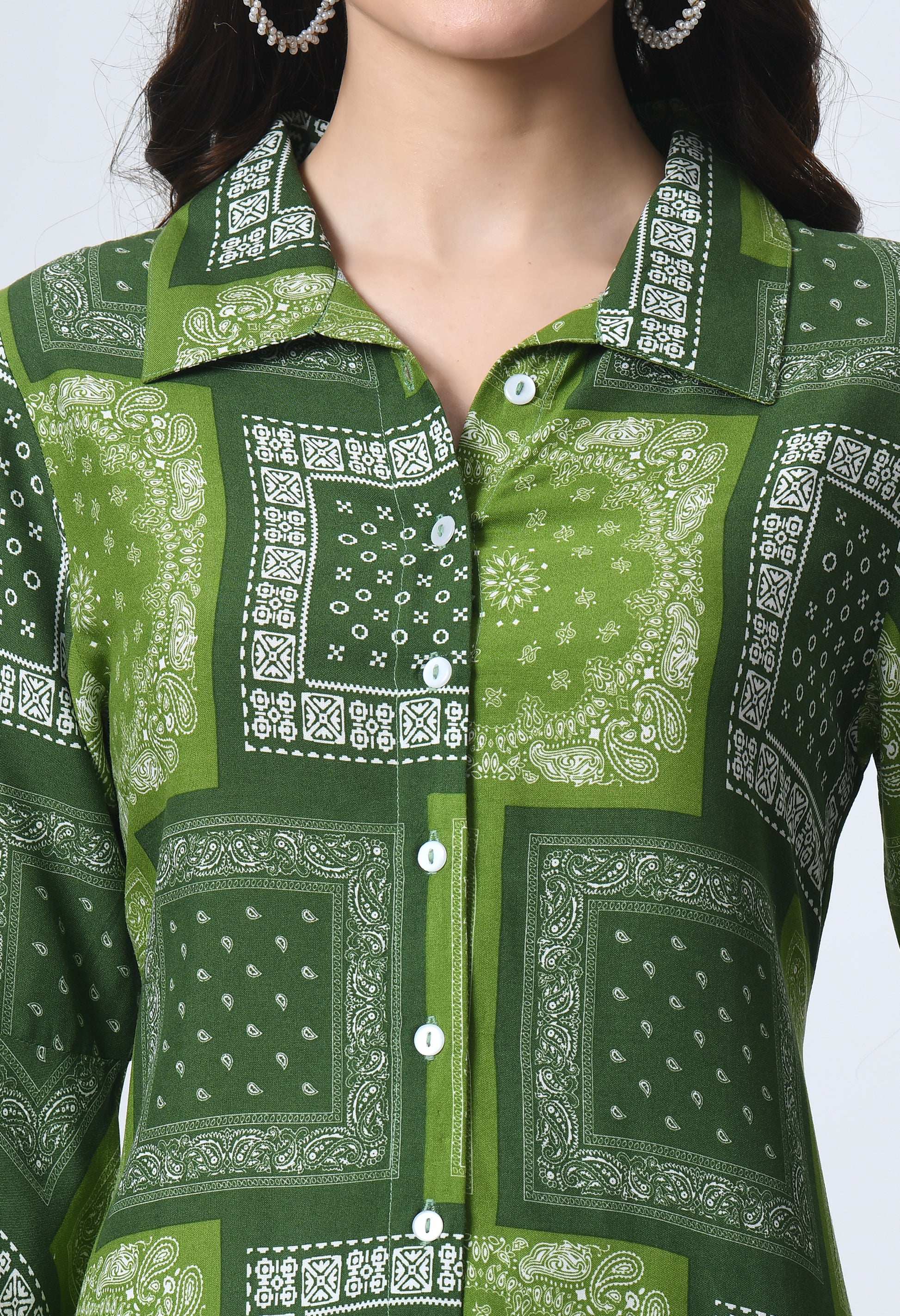 - Green Ethnic Motifs print A-Line dress