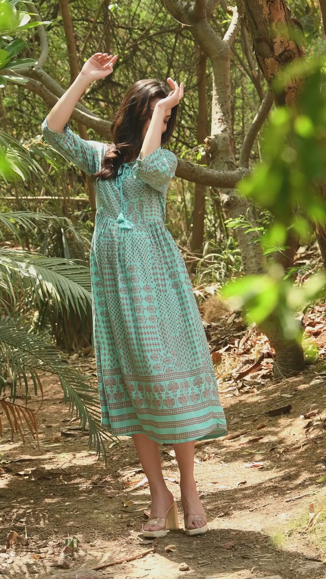 - Sea green ethnic motifs print a-line Maternity dress