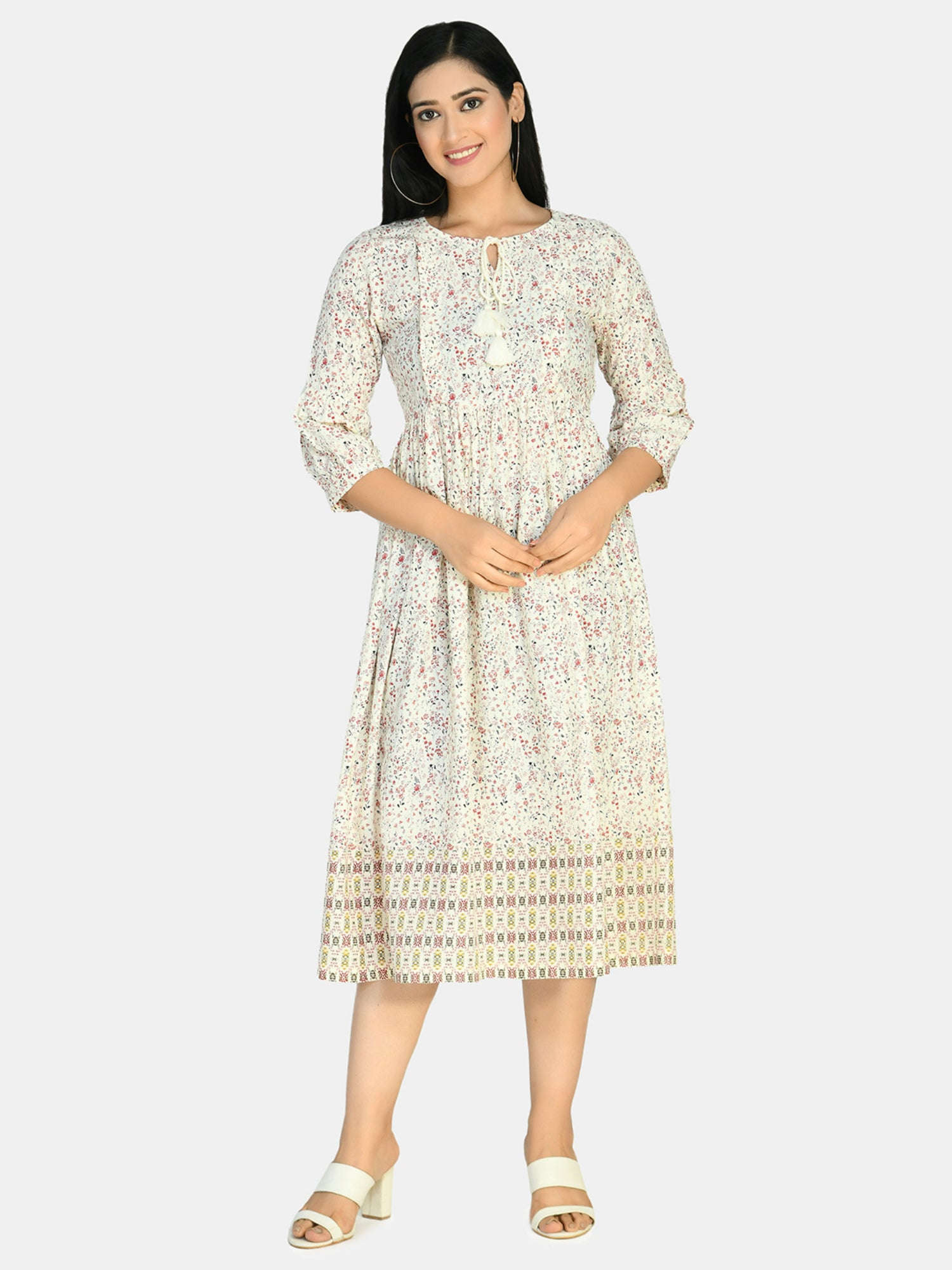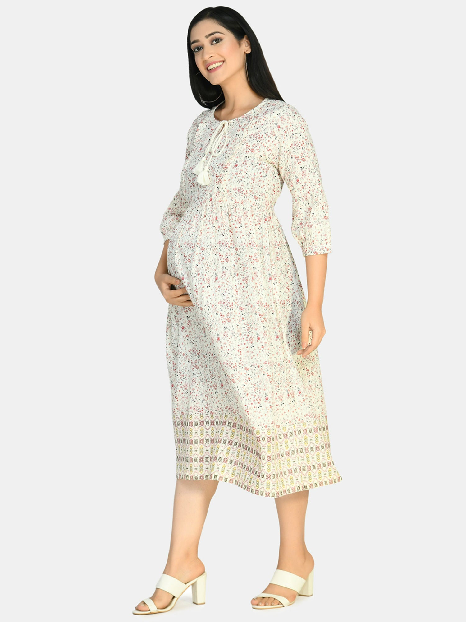 White & Red Floral Tie-Up Neck Maternity Midi Dress