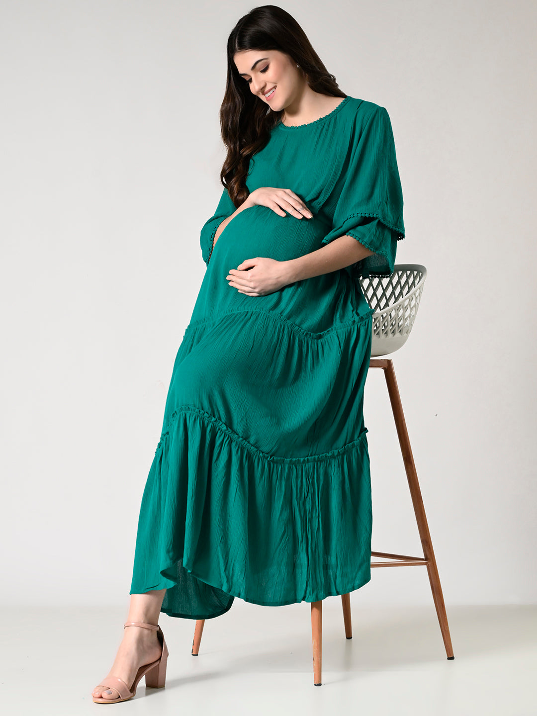 Women Maternity Tiered Flared Sleeves Fit and Flare Dress